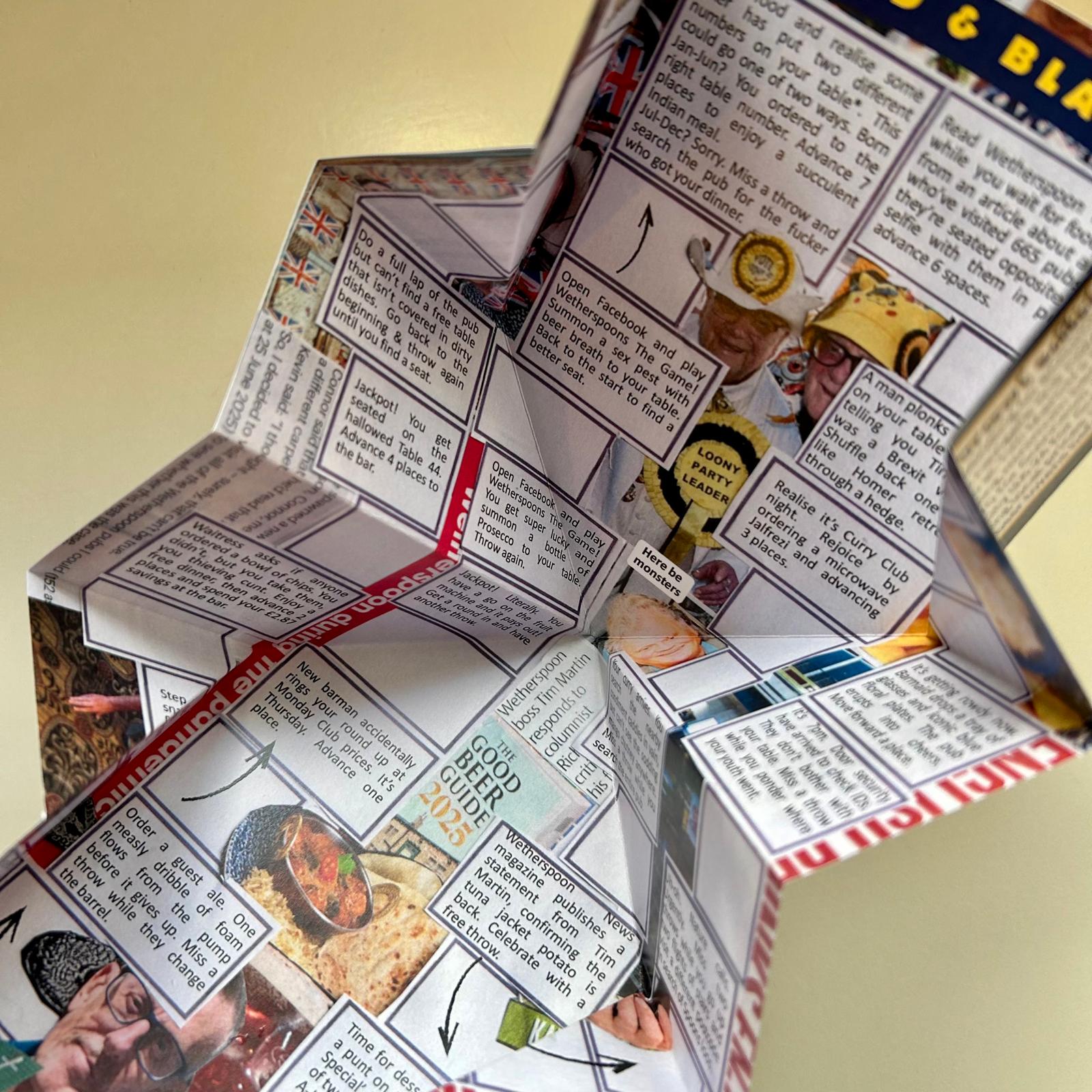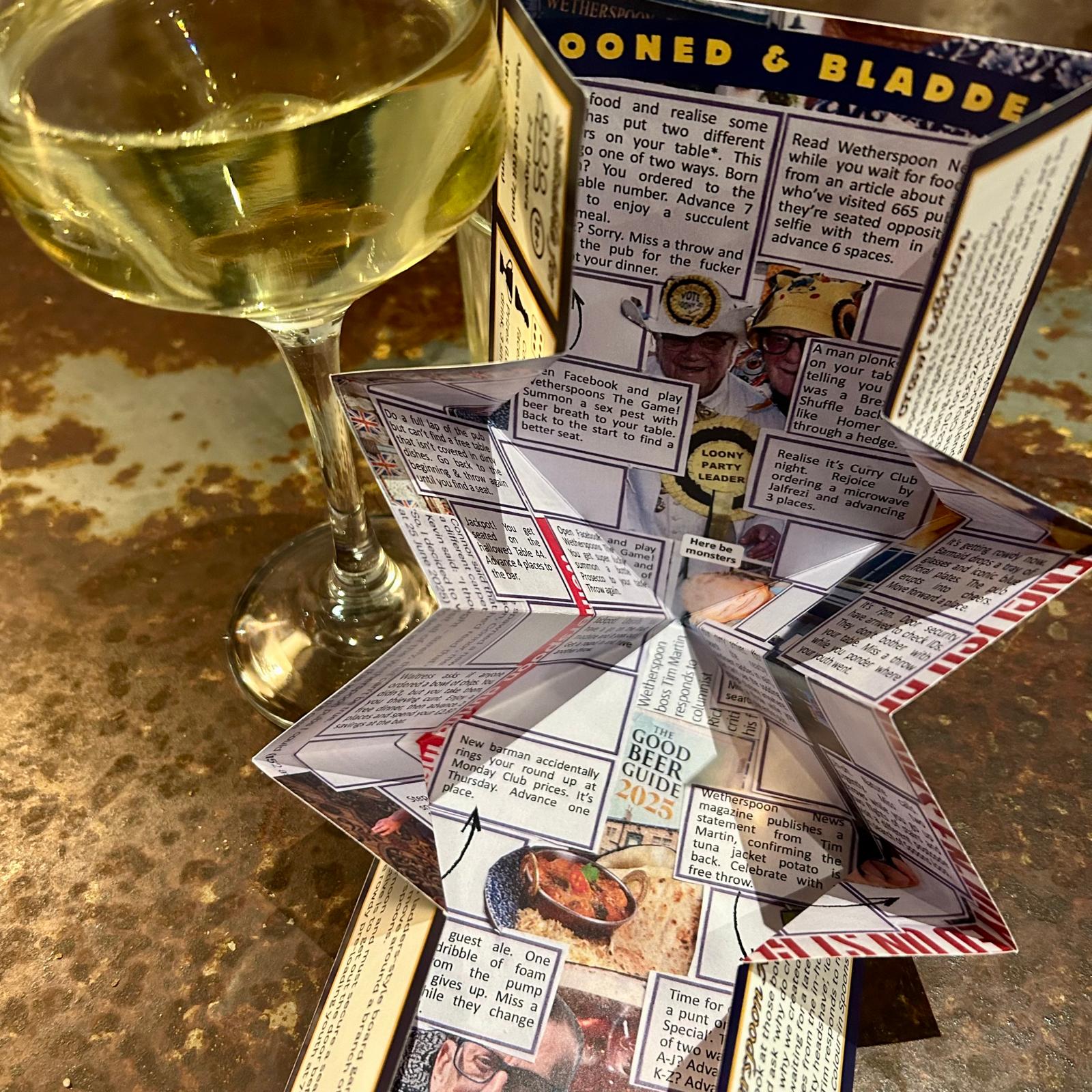 Want something to do while you sip your lukewarm lager? Play this simple board game based around a trip to the popular British budget pub chain Wetherspoons.